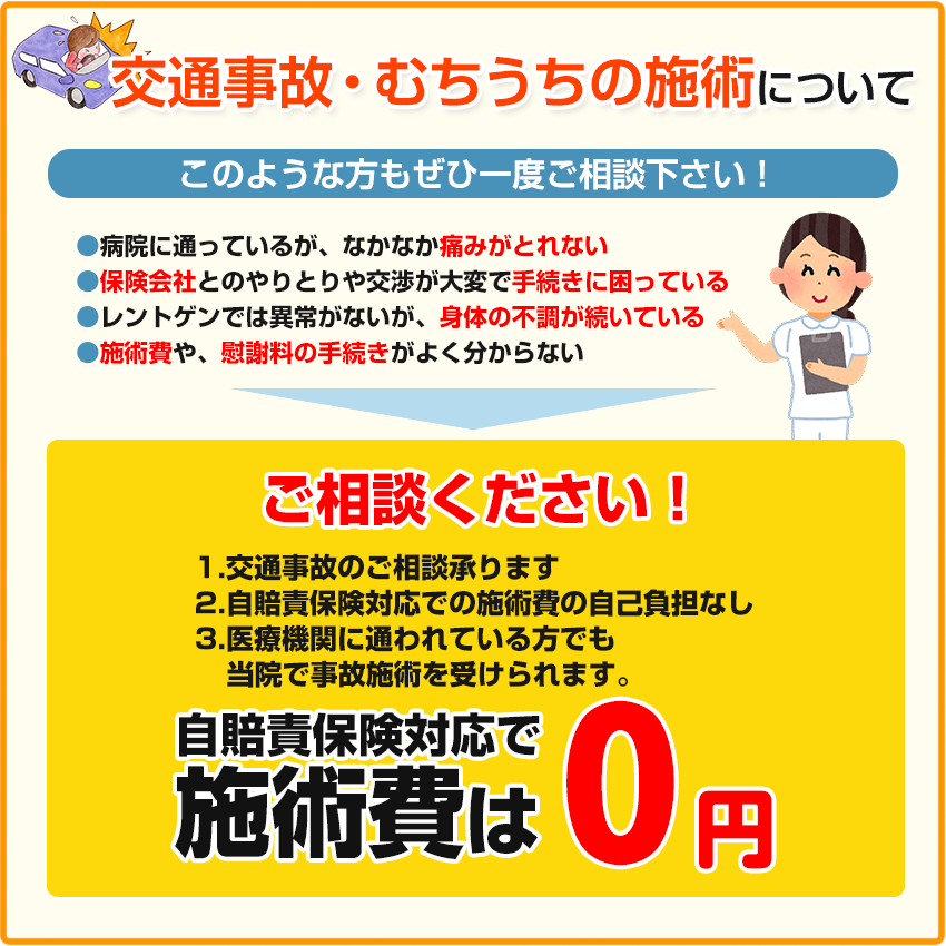 亀岡市のつぼい鍼灸整骨院は、交通事故に対する専門知識のある整骨院です。交通事故後の治療を得意としております。相談も随時受け付けておりますので是非お気軽にご連絡ください。