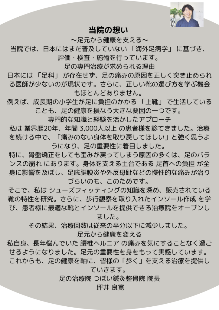 足元から全身のバランスを整え、あなたの身体を本来の状態へ。