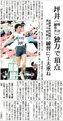 私は陸上競技を行っていて、地元の高校から南丹市の明治国際医療大学に進みました。大学時代は三段跳びや走り幅跳びに打ち込み、京都学生対校選手権などの大会でも優勝や入賞を果たすことが出来ました。
